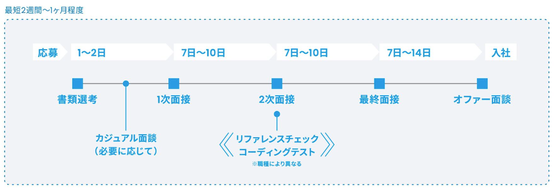 職種によって異なる場合がありますが、おおよそのプロセスは以下の通りとなります。